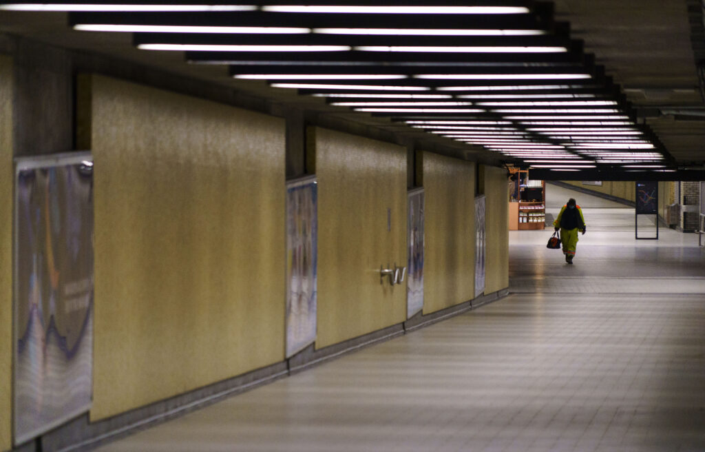 A lone commuter walks a tunnel leading to the subway in Montreal, on Wednesday, Oct. 14, 2020. Quebec has given offices the greenlight to allow up to 25 per cent of workers to return to the job but the response has been lukewarm. THE CANADIAN PRESS/Paul Chiasson